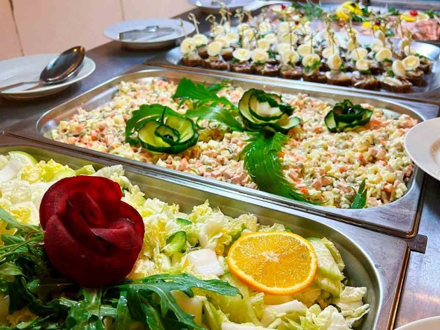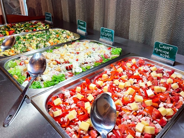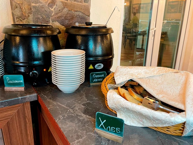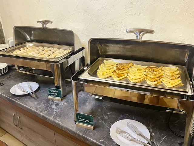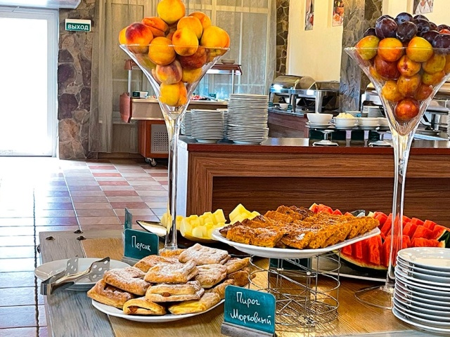 Возможно приобретение питания (отдельно прием пищи или пансион) для гостей, которые не проживают в отеле. Если вы собираетесь в дорогу - можете приобрести ланч-бокс на вынос с понравившимися блюдами «шведского стола». Для этого необходимо обратиться к администратору зала.